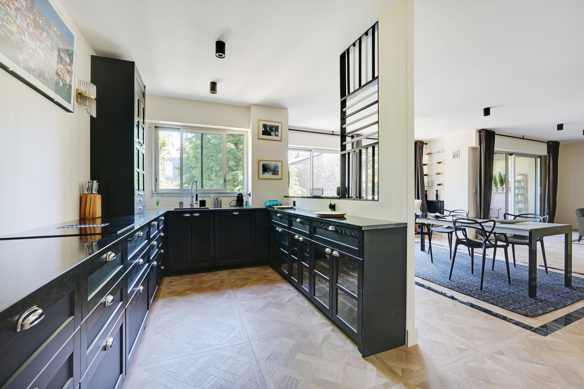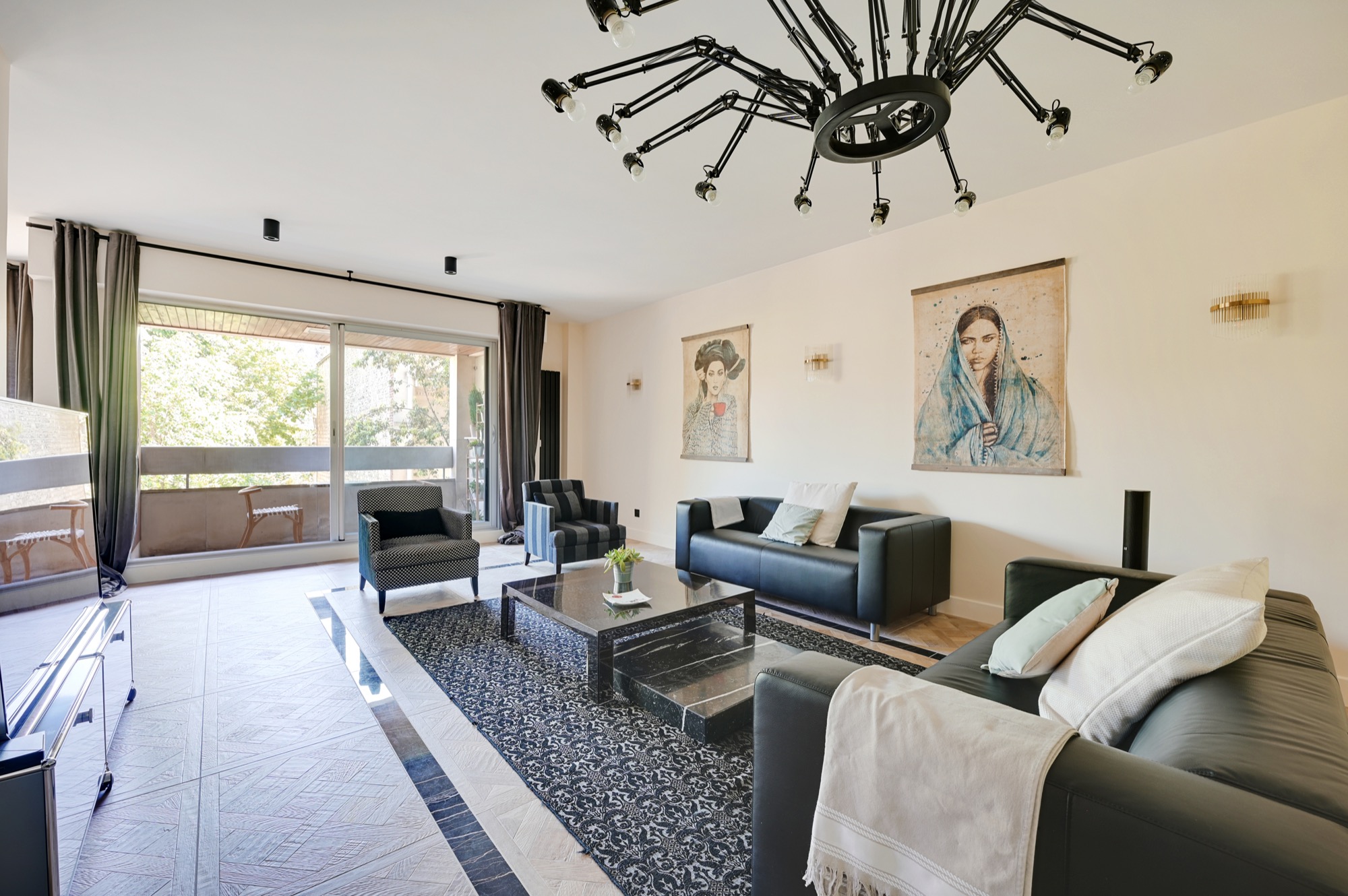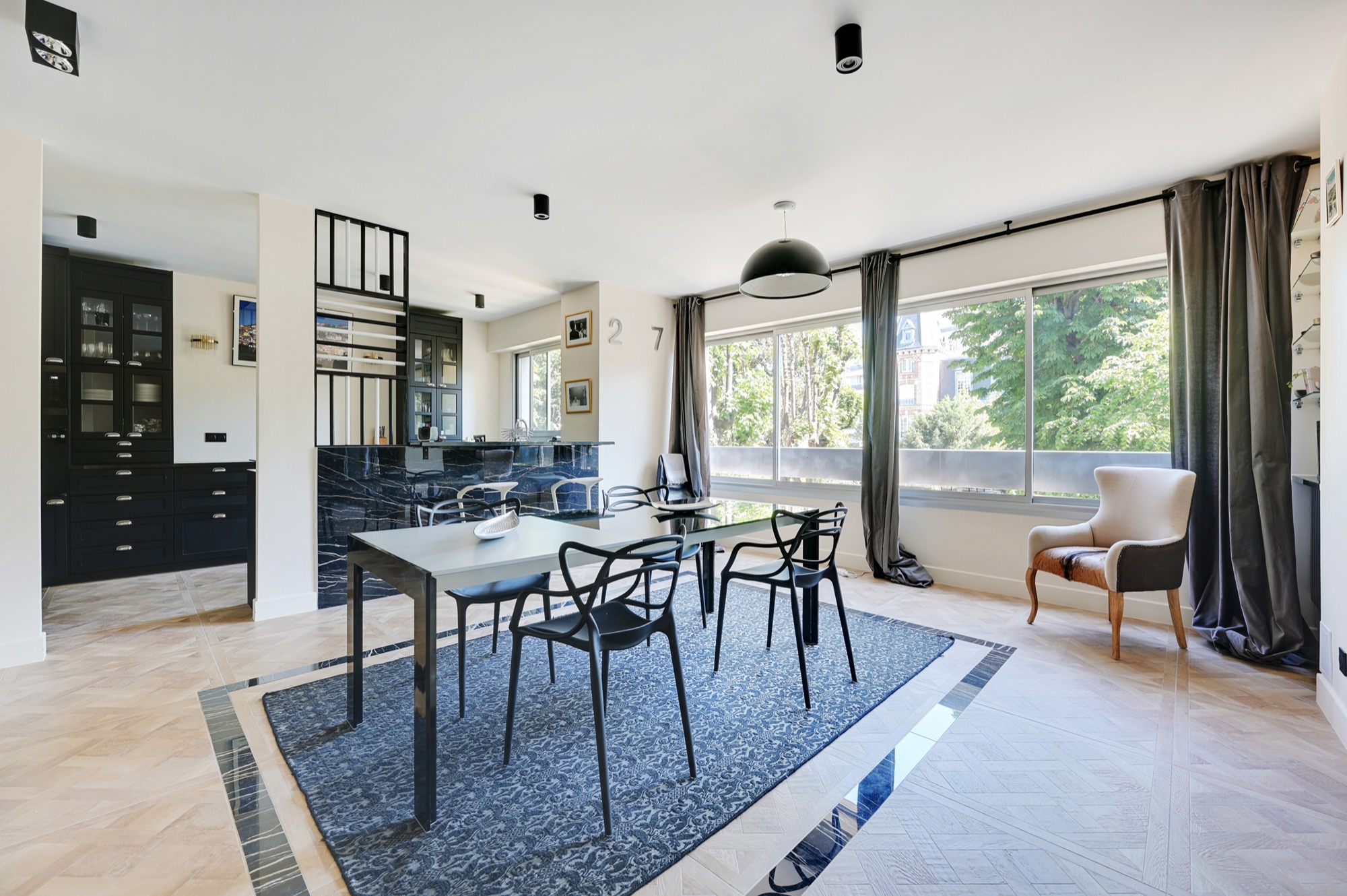 Location of apartment in Quartier Foch - Porte Dauphine in Paris. Private cul-de-sac. 5 rooms, surface area 160 m2. Rare - renovated by architect with prestigious materials - Recent building - 2nd floor - lift. 3 bedrooms - 2 wc - semi-open-plan kitchen - dressing room - laundry room - cellar - through balcony and small terrace with garden view. Very quiet location. Rental parking in the street. Collective heating and hot water. Service charges 1000 Euros/month. Annual property tax 2345 Euros.