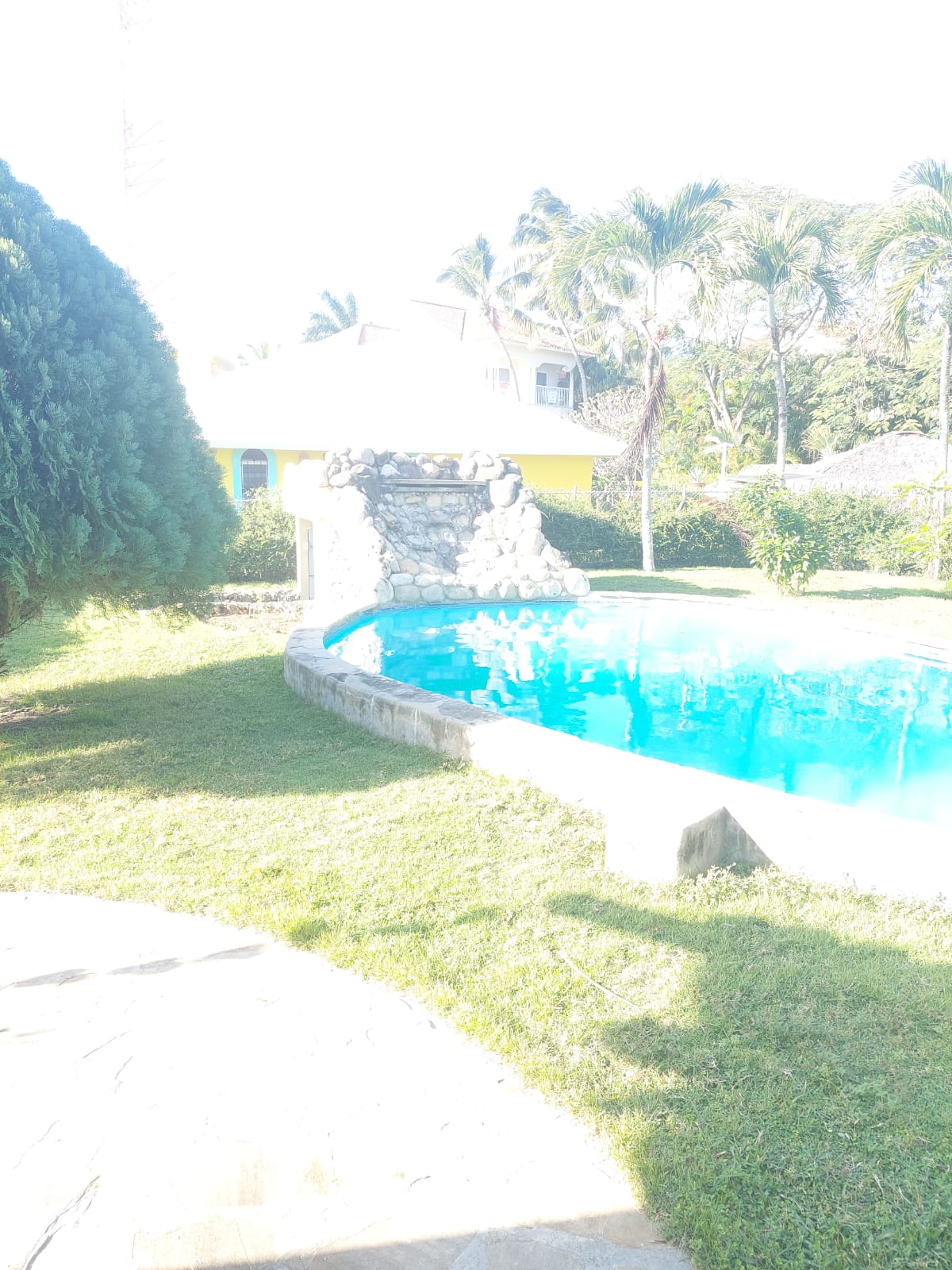 For sale house at the entrance to Cabarete, its sea of fine sand its kite surfing. In an Olas De Oro subdivision with all amenities, and 24-hour security. 5 minutes from the beach, a pretty house of 175 m2 awaits you, fully furnished. - 2 bedrooms with toilet and shower; - 1 bedroom with double sink, toilet and jacuzzi; - 1 large living room; 1 fully equipped kitchen; -1 visitor toilet; -1 roof terrace; - 1 large swimming pool; - 1 garage for 1 car; - 1 pretty wooded garden. Year of construction 2002-2003. Land area 811 m2.